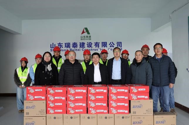 2月11日,公司黨委副書記、總經(jīng)理、董事劉漢興一行到瑞泰公司S236辛濱線濱城繞城段改建工程施工一標(biāo)段項目經(jīng)理部慰問一線員工。公司黨委委員、工會主席、職工董事于光,黨委委員、副總經(jīng)理、安全總監(jiān)張繼軍陪同。